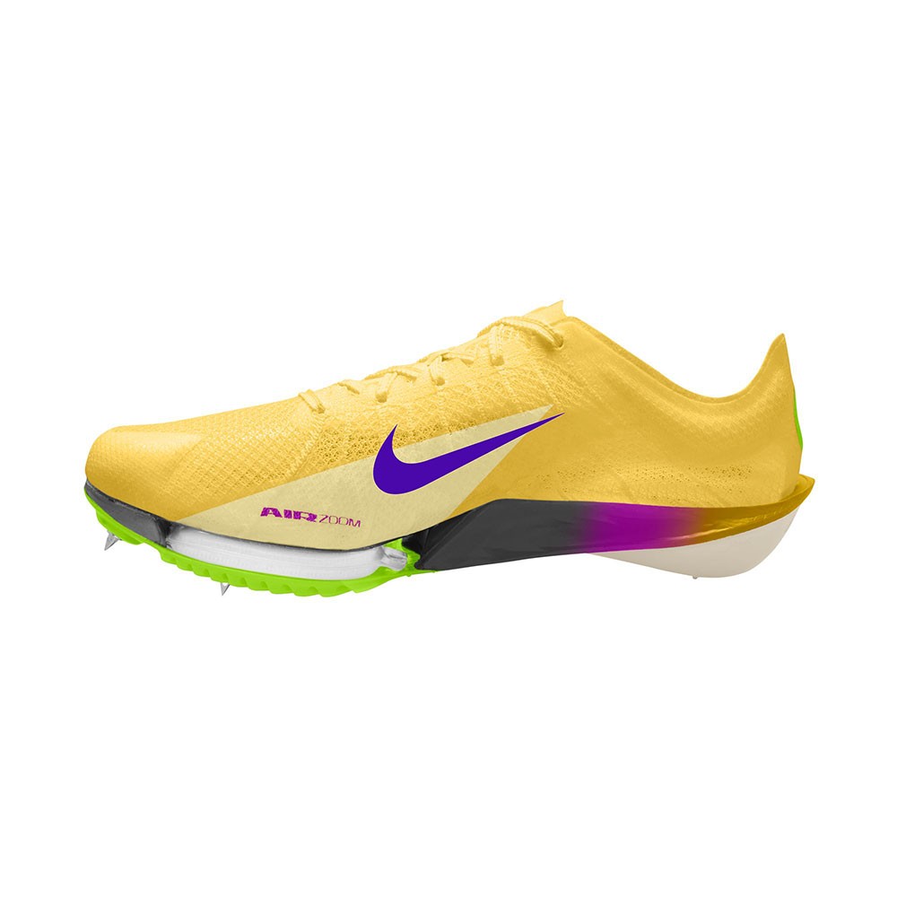 L'intersuola con schiuma ZoomX è completata da un’unità Air Zoom a due camere sull’avampiede, offrendo propulsione potente e stabile. Il piatto suola Flyplate in fibra di carbonio, più rigido e leggero rispetto alla versione precedente, garantisce una spinta reattiva e un’ottima resistenza in curva e nei rettilinei.