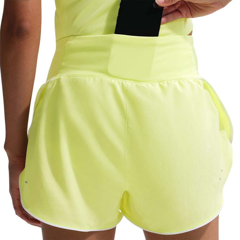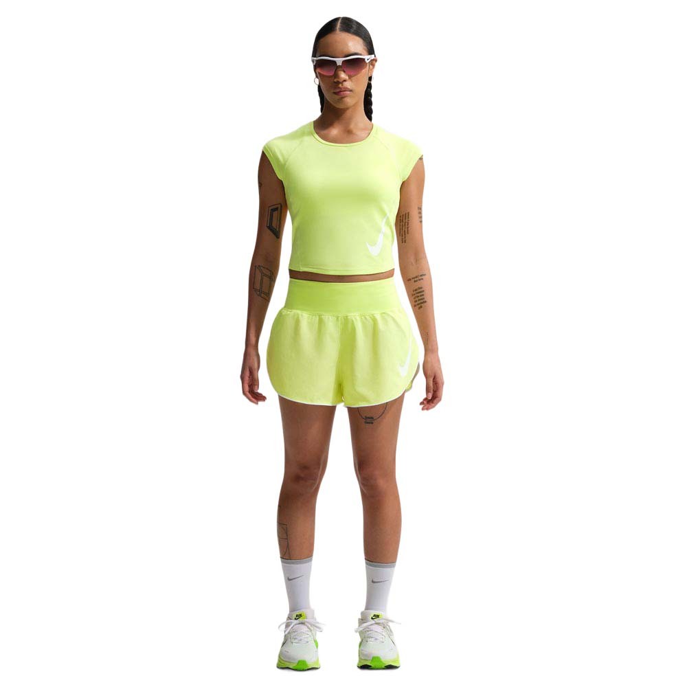 Pantaloncini running Nike Tempo Flow Swoosh Lt Lemon da donna, vita media, ultraleggeri e freschi, pensati per falcate ampie e libere.