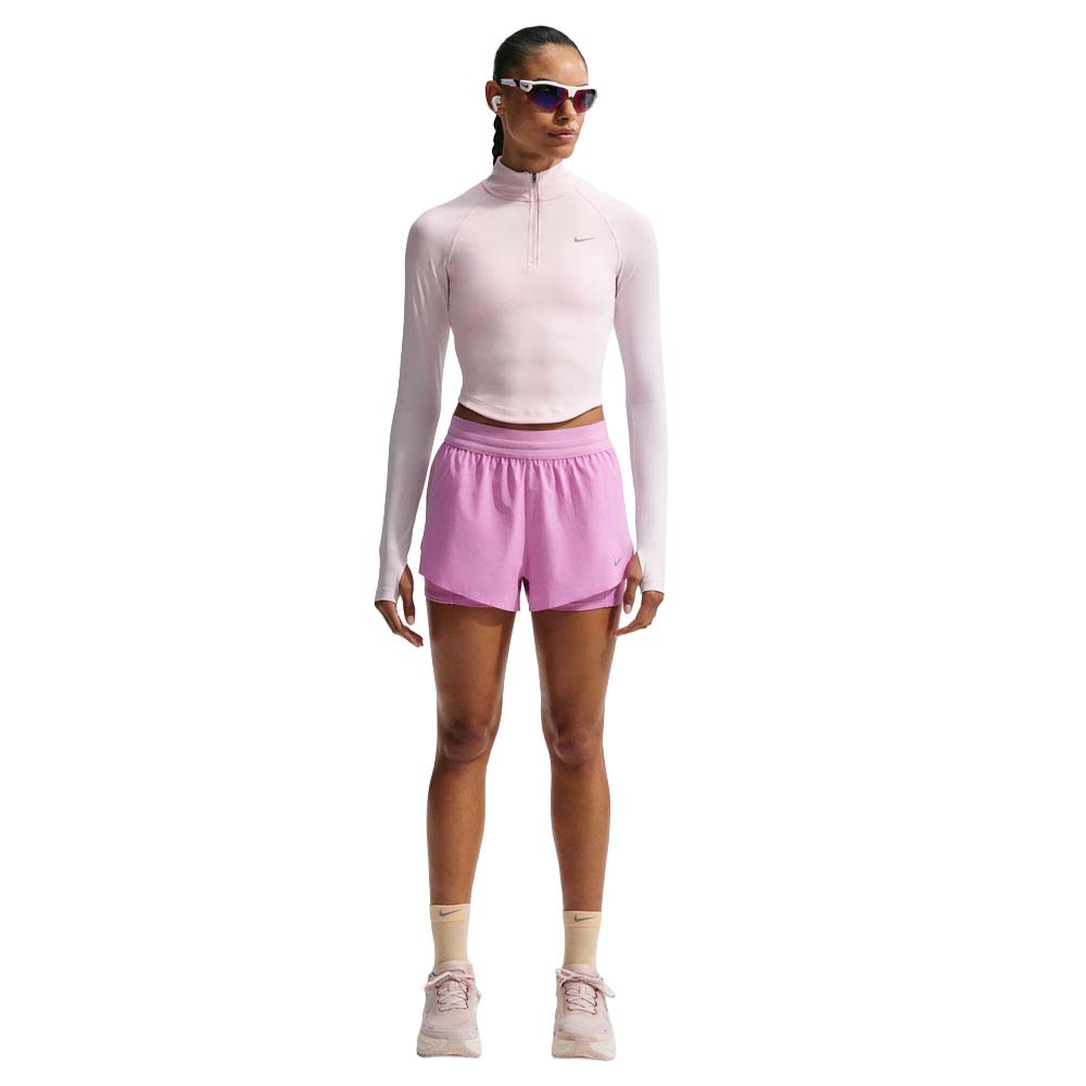 Nike Swift Shorts Running 2 In 1 Lt Magenta donna vita media Dri-FIT con doppio strato tasche e protezione UV