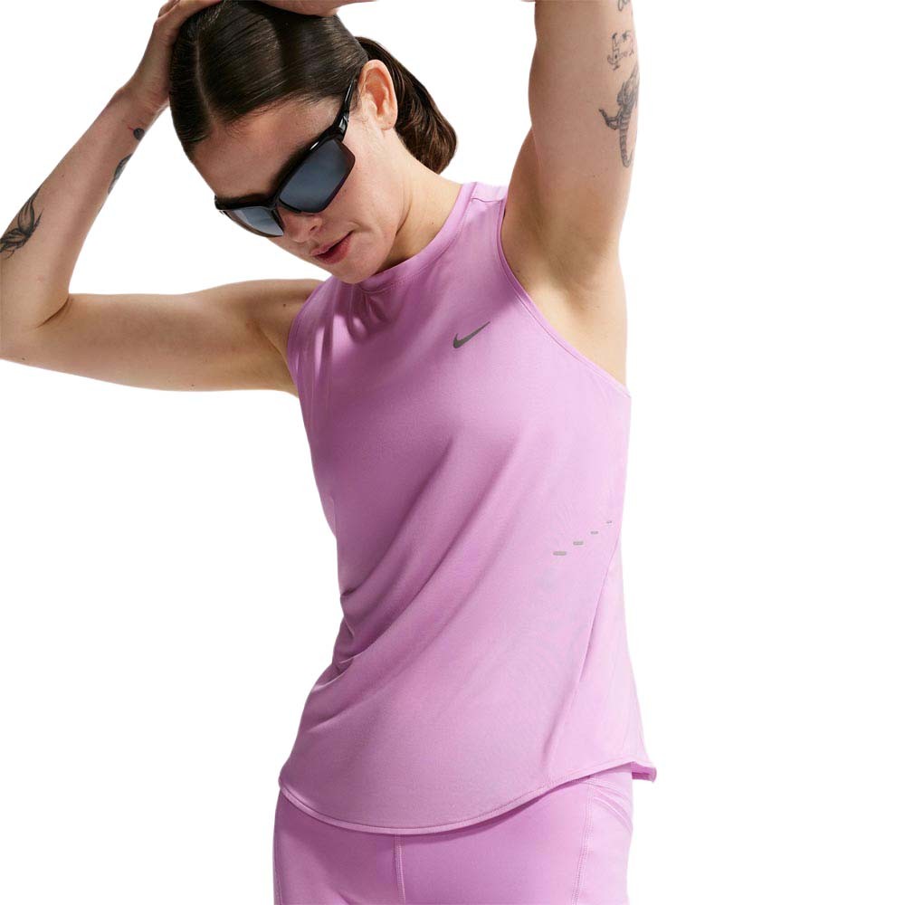 Nike Swift Shorts Running Tight Hr Lt Magenta donna vita alta 10cm Dri-FIT con 3 tasche e grafiche rifrangenti sulla coscia