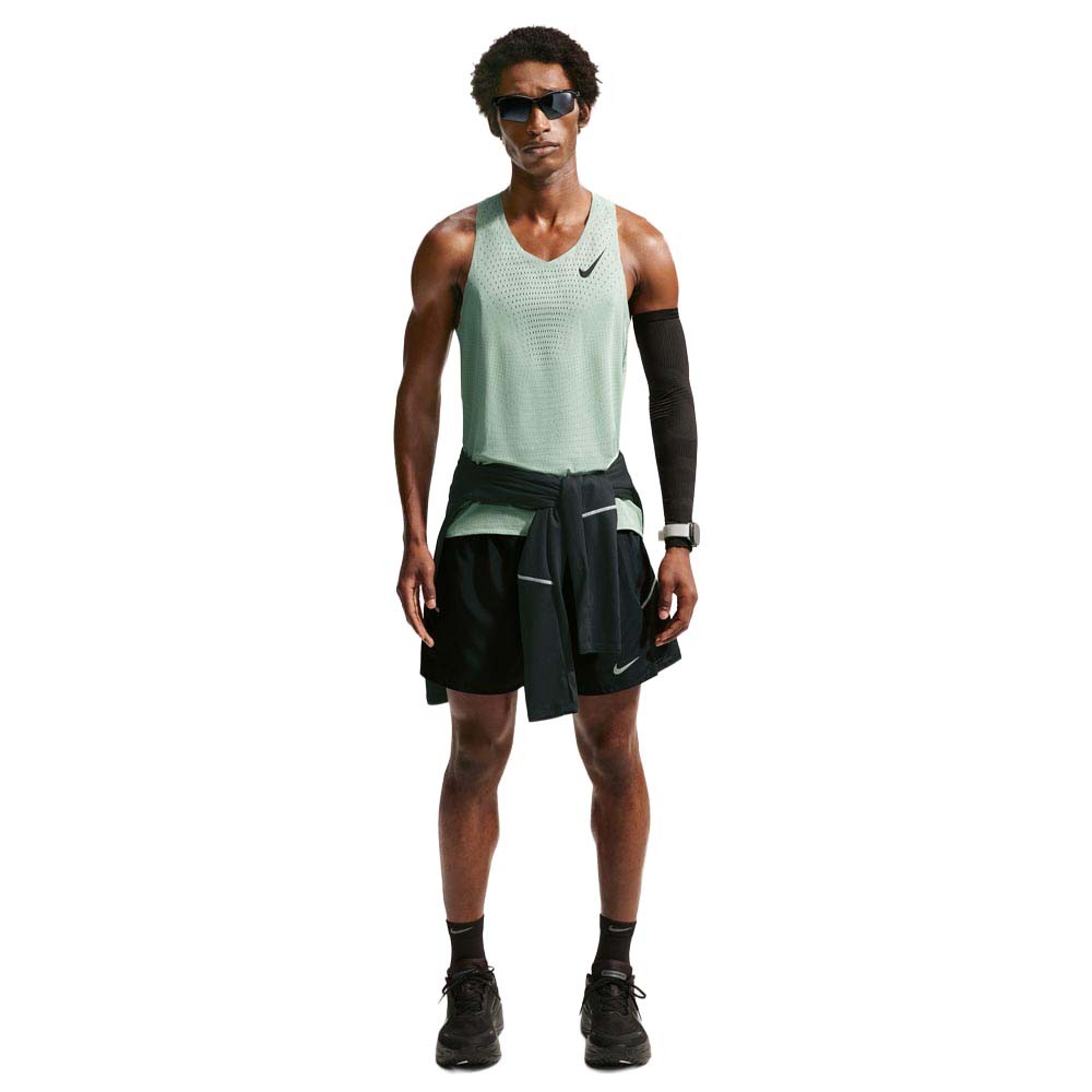Nike AeroSwift Canotta Running Steam Nero uomo Dri-FIT ADV con inserti traforati mirati bordo allungato e Swoosh non rifrangente