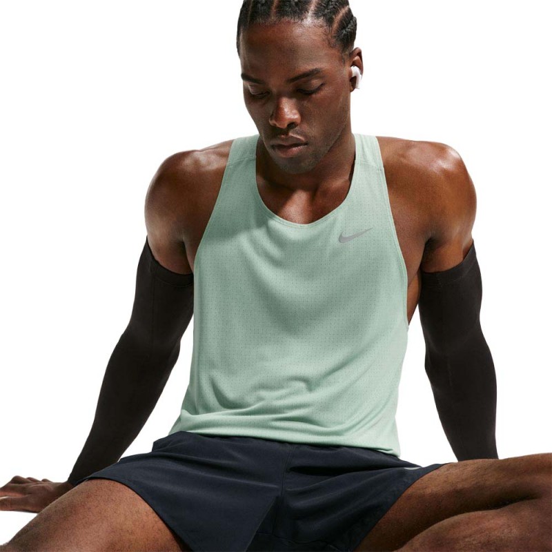 Nike Fast Canotta Running Steam Nero uomo Dri-FIT con taglio americano Swoosh rifrangente e fit rilassato ultraleggero
