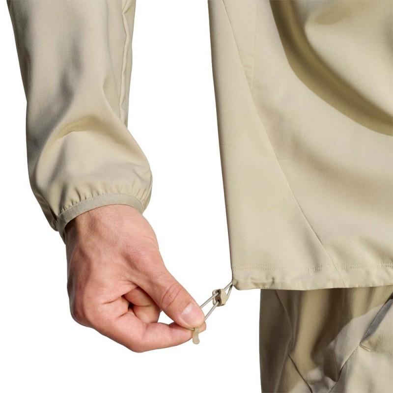 La costruzione in poliestere riciclato a trama liscia e la vestibilità regolare assicurano comfort traspirante, mentre cappuccio e orlo regolabili offrono una sensazione di sicurezza. La tecnologia Climacool wicking disperde sudore e calore per mantenerti fresco e asciutto, mentre la tasca con zip per il telefono sul petto tiene i tuoi oggetti a portata di mano. Il logo performance riflettente e le linee Formotion danno carattere tecnico e libertà di movimento.