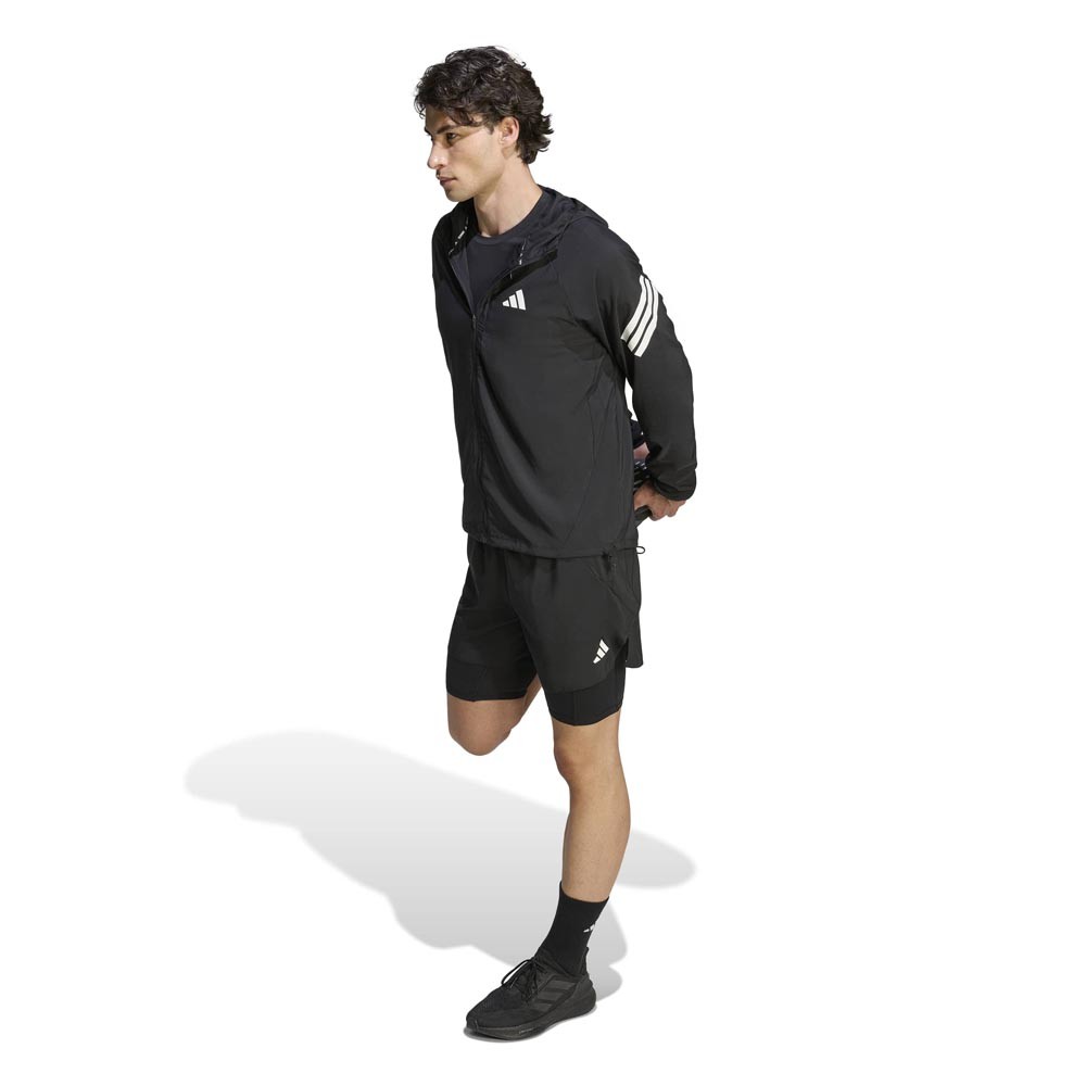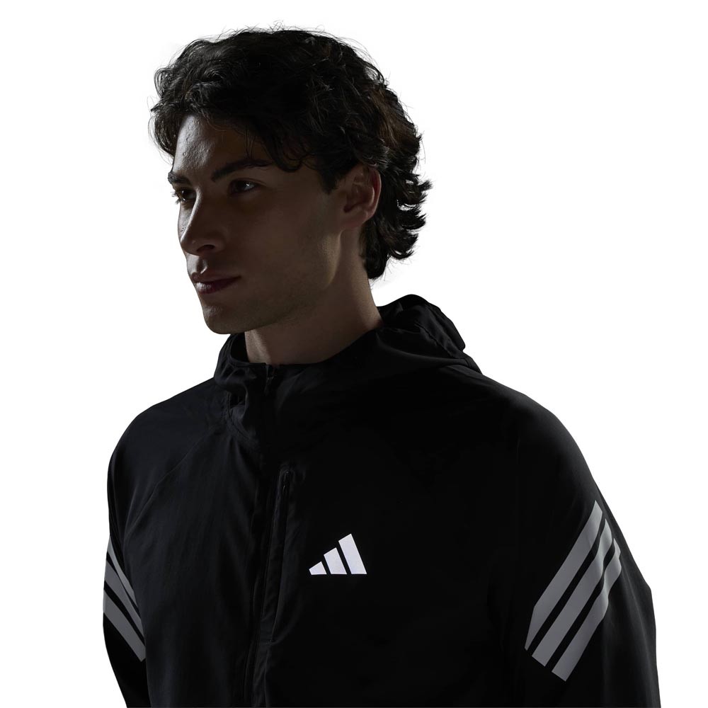 Giacca running nera e bianca adi365 Iconic da uomo, pensata per trasformare ogni corsa in un’esperienza fresca, asciutta e senza distrazioni.