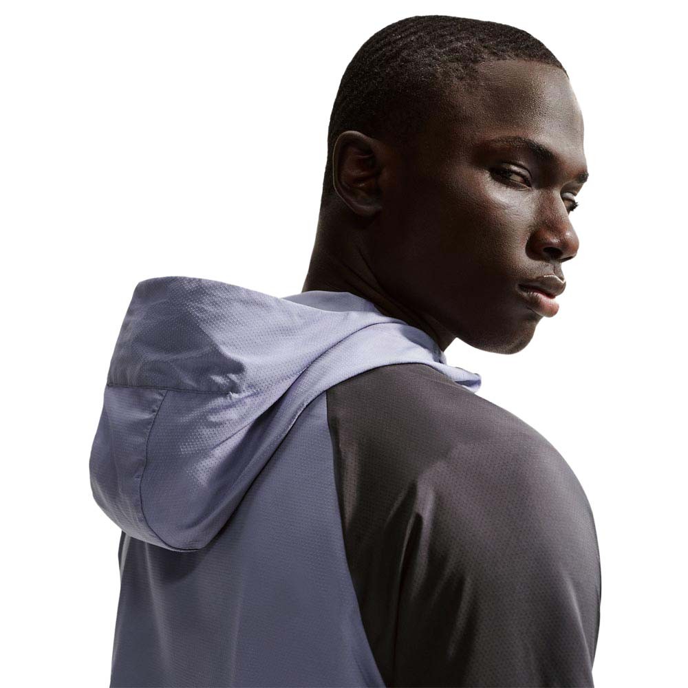 Giacca running Nike Impossibly Light Windrunner Iron H da uomo, ultraleggera, packable e idrorepellente, pensata per il maltempo e il sole intenso.
