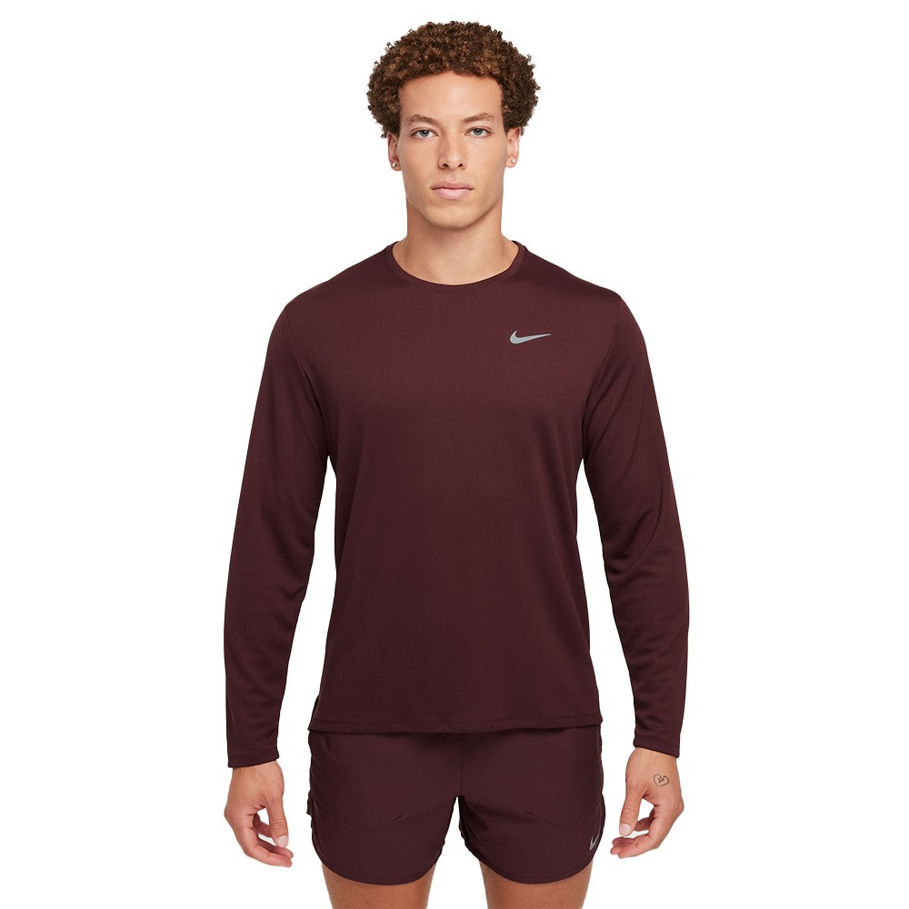 Nike Maglia Manica Lunga Miler Burgundy Crush Reflective Argento Uomo