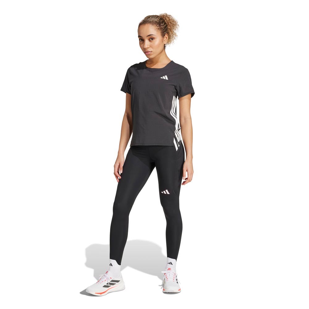 Tight running Adizero nero bianco da donna con CLIMACOOL pensati per registrare il tuo tempo più veloce con freschezza e supporto a vita alta.