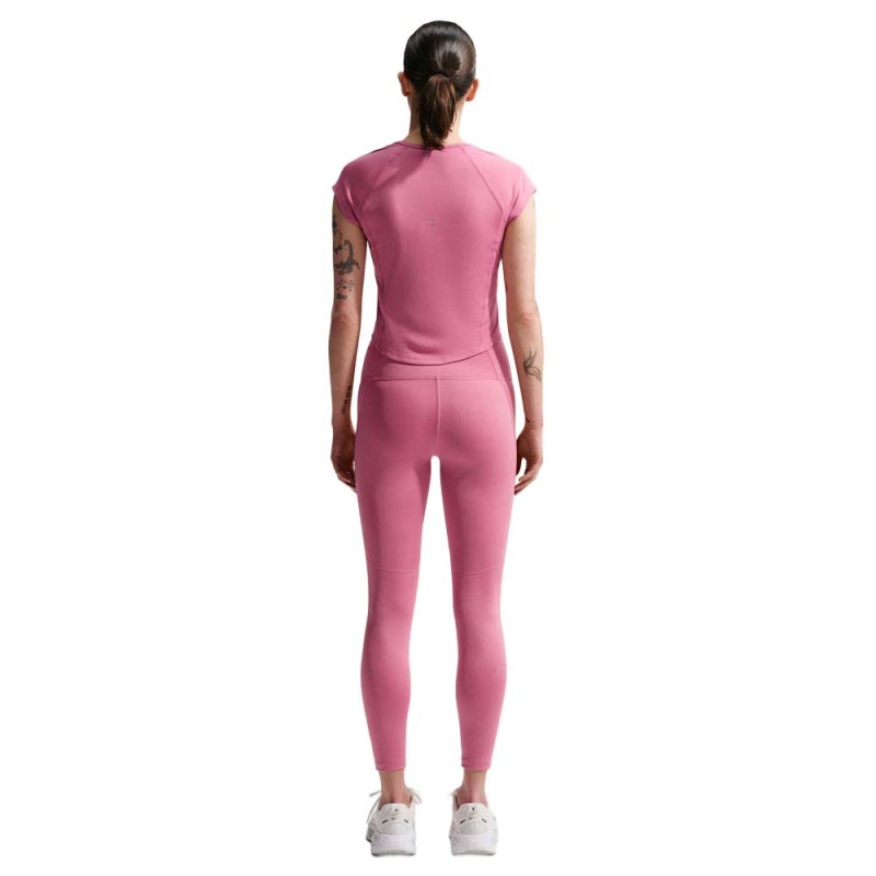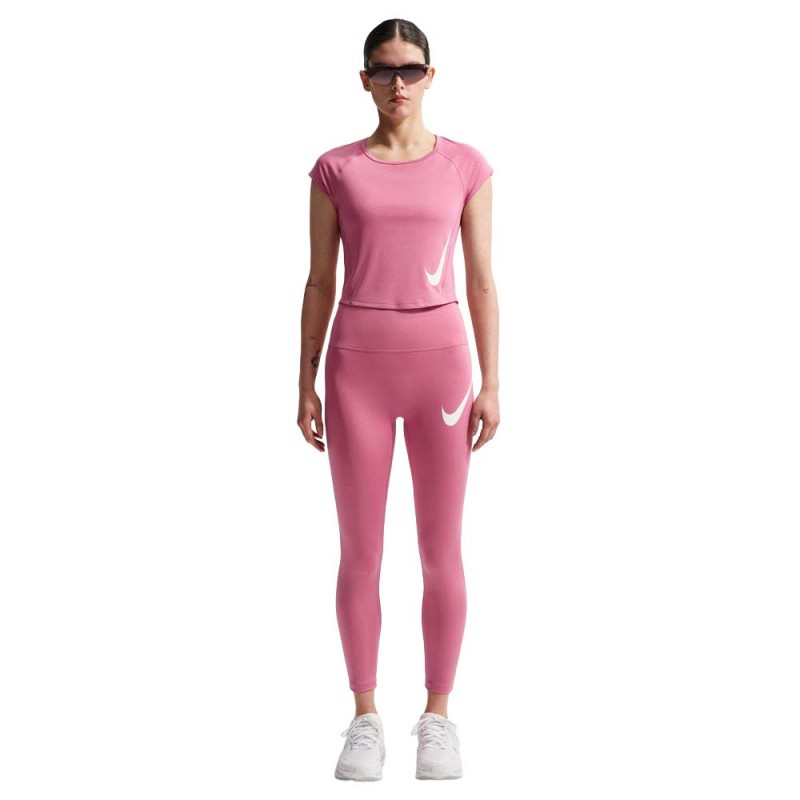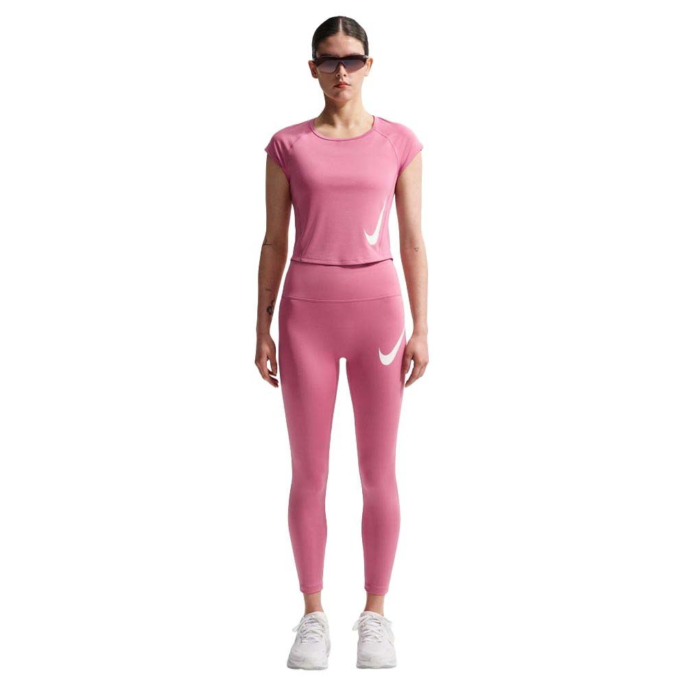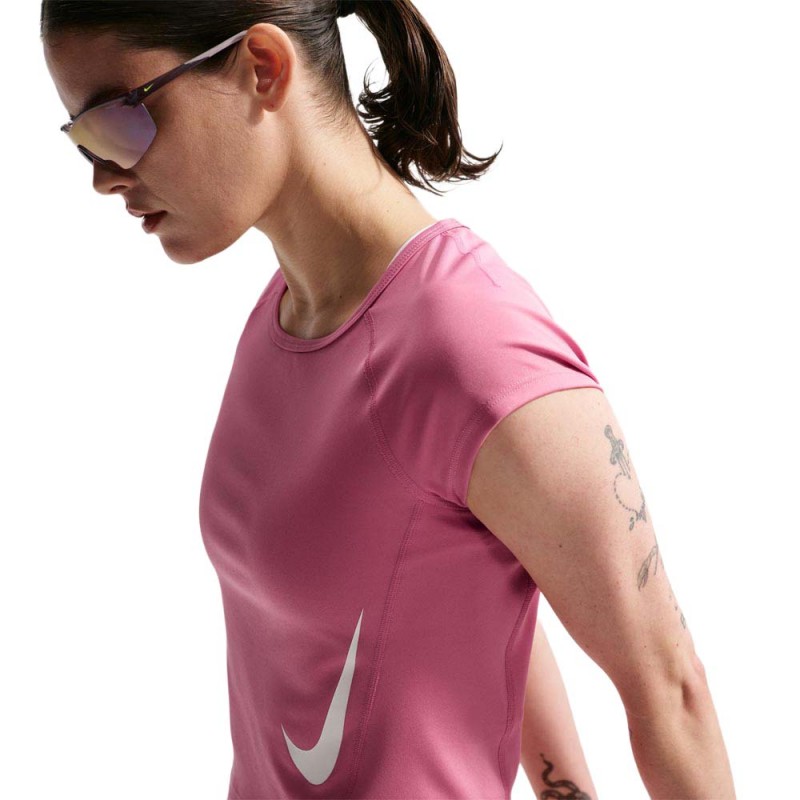 Nike Tempo Swoosh Maglia Running Peony Rosa Foam donna Dri-FIT corta aderente con maniche raglan e grafica Swoosh