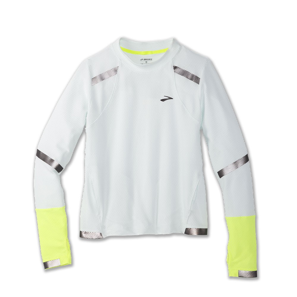 Brooks Maglia Running a manica lunga Carbonite Icy Grigio Nightlife Donna: ideale per corsa al buio, corsa con vento e pioggia leggera.