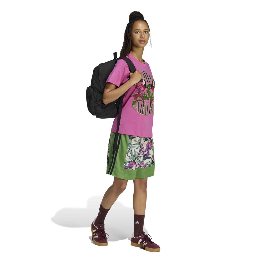 Maglietta palestra adidas x Farm Rio Graphic rossa da donna, ampia e colorata, pensata per portare l’energia dei campetti urbani nel tuo everyday look.