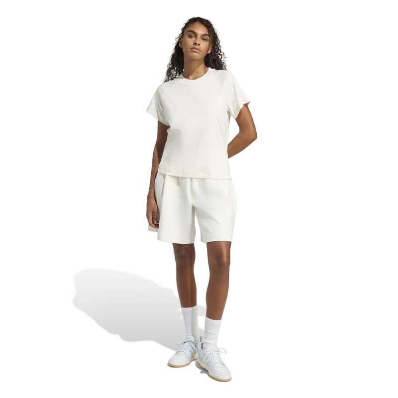 Maglietta palestra adidas Soft Lux bianca da donna, minimal e lussuosa, perfetta per passare dallo sport al tempo libero con un solo gesto.
