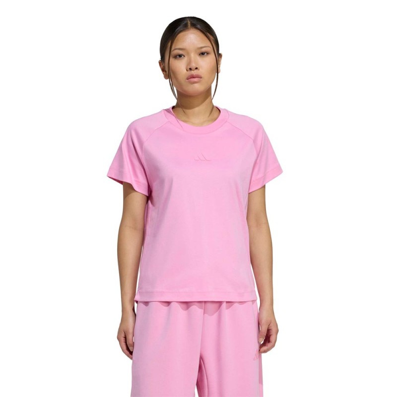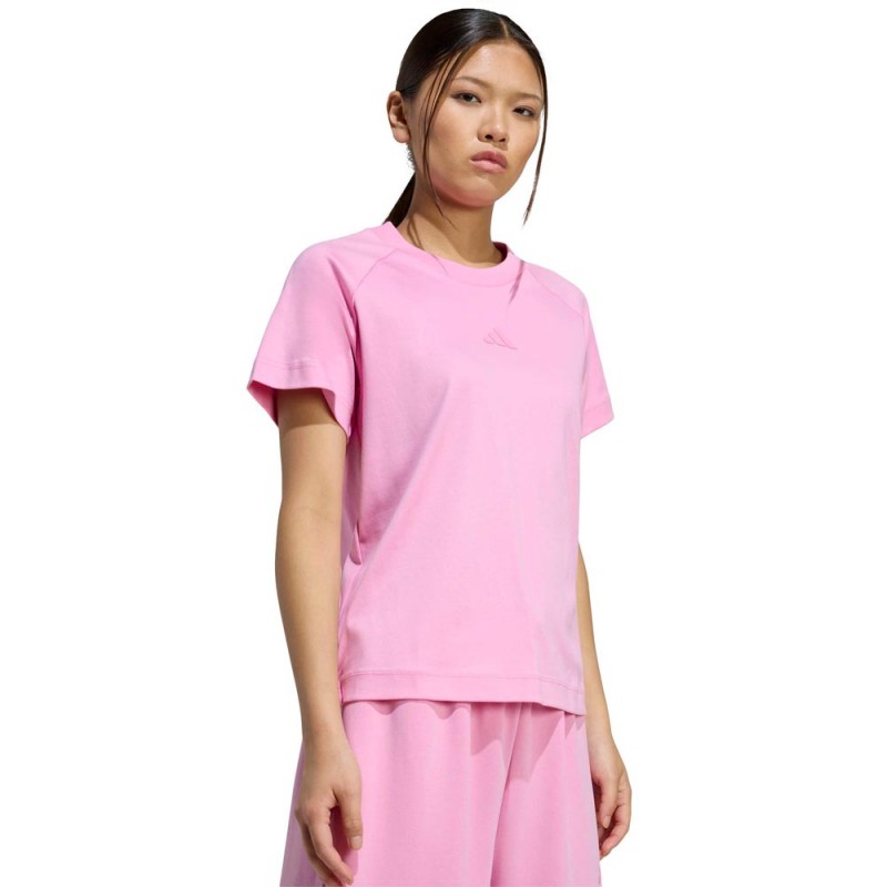 Maglietta palestra adidas Soft Lux rosa da donna, elegante e disinvolta, creata per chi vuole un capo unico che elevi l’activewear.