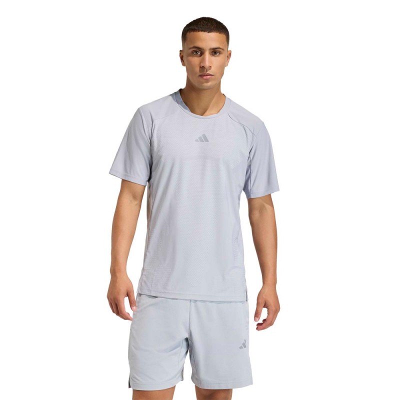 Maglietta palestra adidas Train Climacool grigia da uomo, fresca e tridimensionale, pensata per allenamenti intensi con stile ispirato al campo.