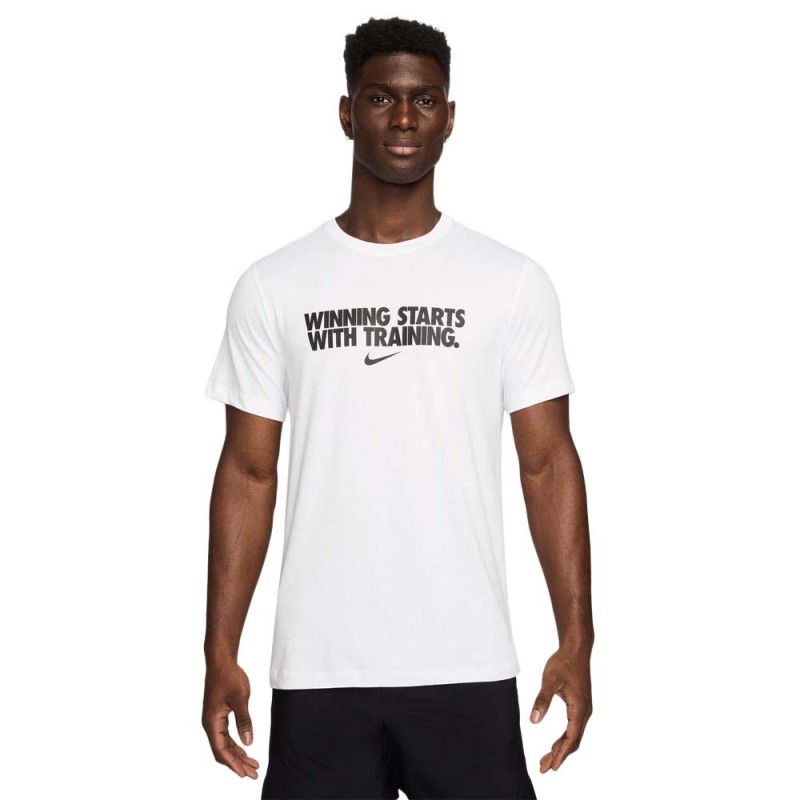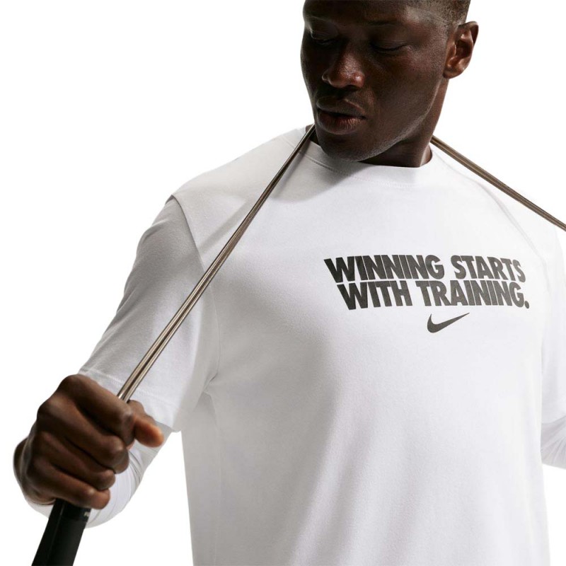 Nike Maglietta palestra Graphick bianca da uomo, t shirt Dri FIT in jersey leggero per allenarsi asciutti con comfort quotidiano.