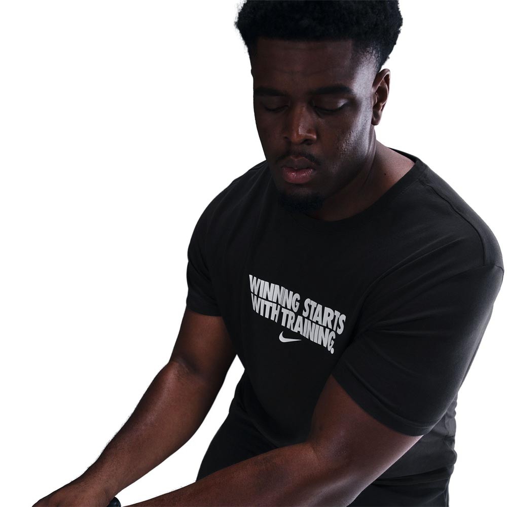 Nike Maglietta palestra Graphick nera da uomo, t shirt Dri FIT in misto cotone tecnico per performance asciutte in chiave total black.