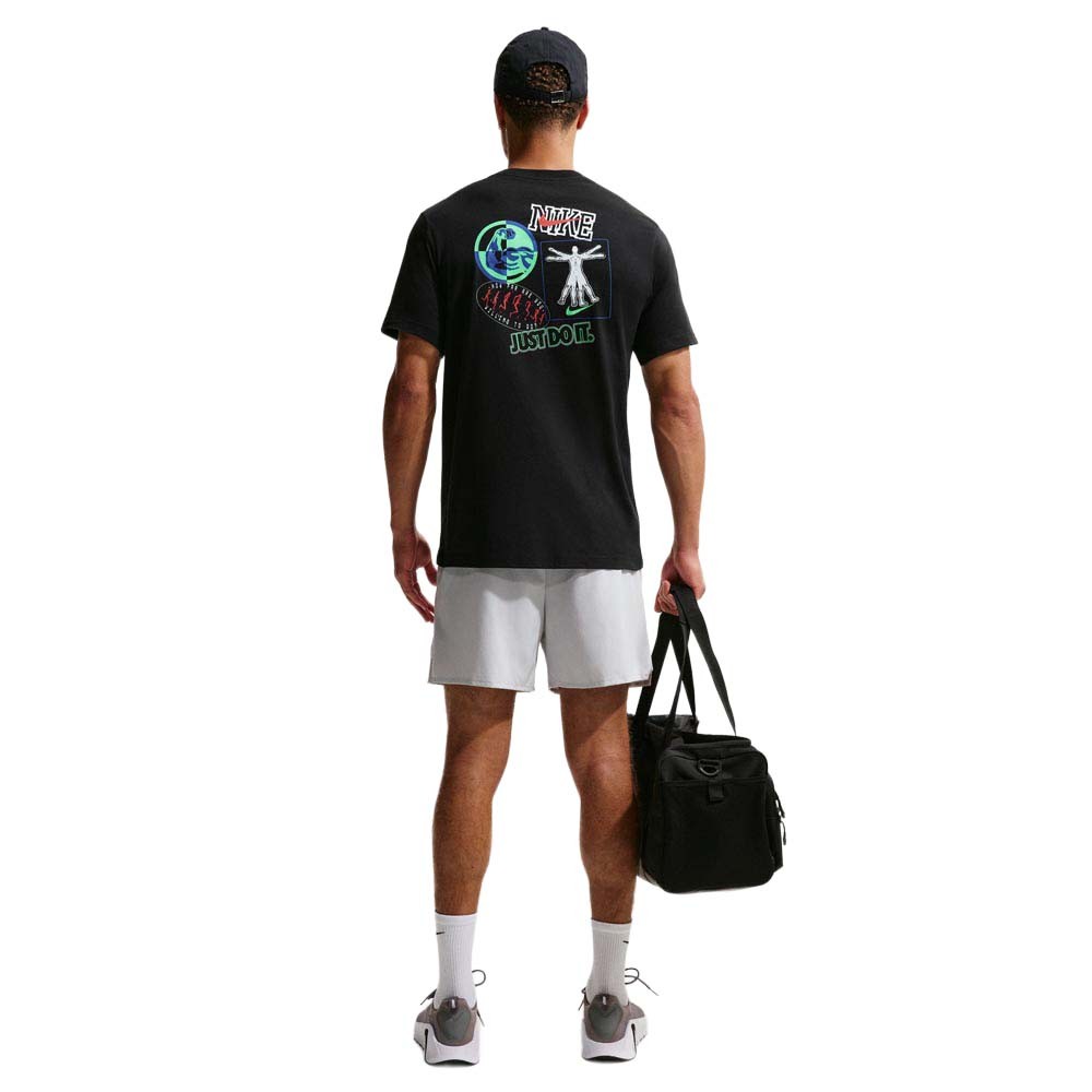 Nike Maglietta palestra Train Stickers nera da uomo, t shirt in cotone con grafica stickers per portare vibe da sala pesi ovunque.