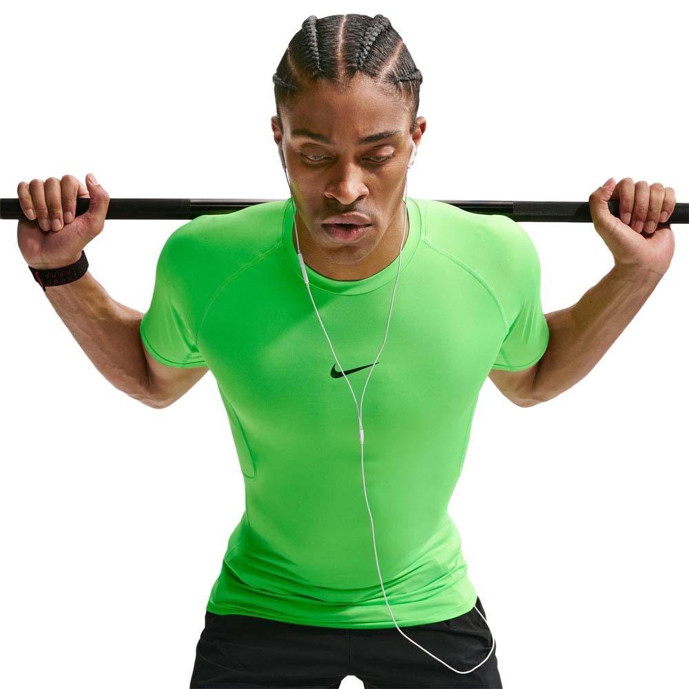 Nike Pro Training Maglietta Palestra Verde uomo Dri-FIT slim con pannelli mesh in poliestere riciclato e bordo allungato