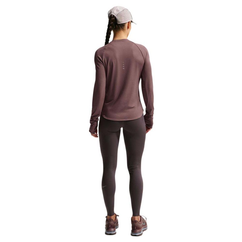 Maglia running Nike Swift crew Tattoo argento da donna, girocollo a manica lunga Dri-FIT UV, creata per marcare chilometri con morbidezza e totale focus.