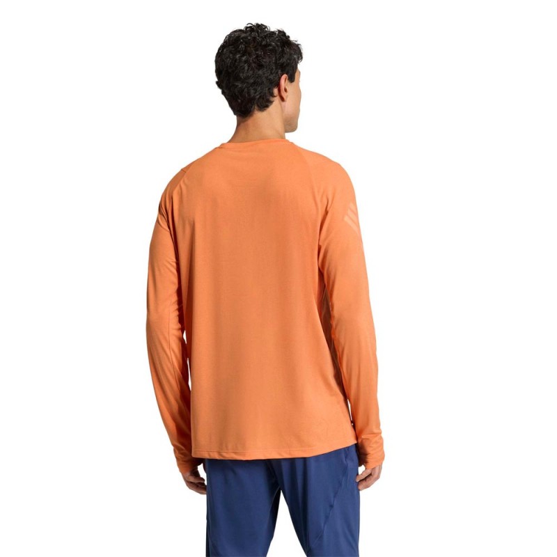 Maglia running a maniche lunghe arancione con Climacool, pensata per offrire freschezza, copertura e stile deciso in ogni condizione.