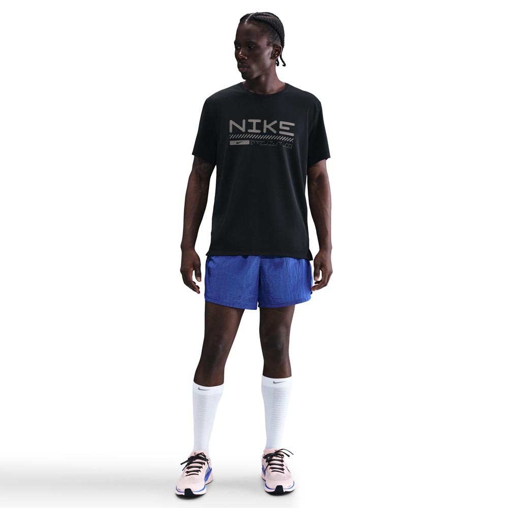 T-shirt running Nike Miler Winter nera da uomo, leggera e traspirante, pensata per l’inverno con grafica rifrangente a forte impatto.