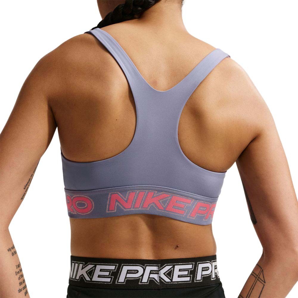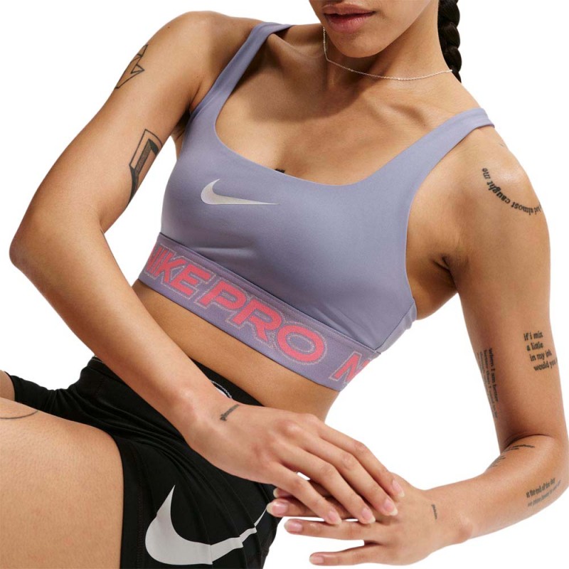 Nike Pro reggiseno sportivo Light Support lilla da donna, bra leggero non imbottito con Dri FIT per training asciutto e look energico.
