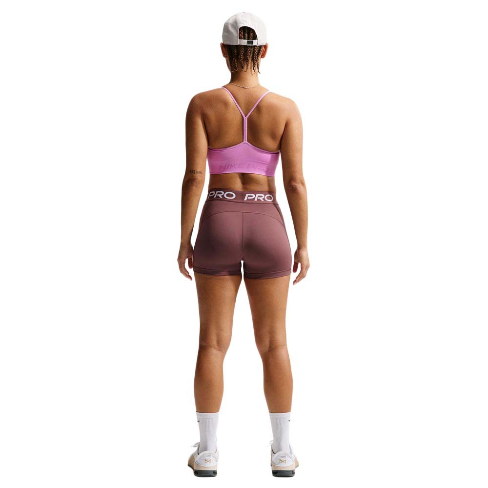 Nike Pro reggiseno sportivo Seamless rosa da donna, bra light support imbottito con pannelli a costine per sostegno delicato e libertà di movimento.
