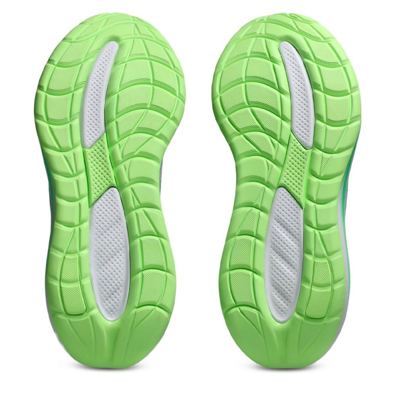 La tecnologia PureGEL™, posizionata nel tallone, migliora l’assorbimento degli impatti ed è circa il 65% più morbida rispetto al GEL tradizionale, favorendo atterraggi più delicati. La tomaia in mesh rinforzato assicura traspirabilità e supporto senza appesantire la struttura.