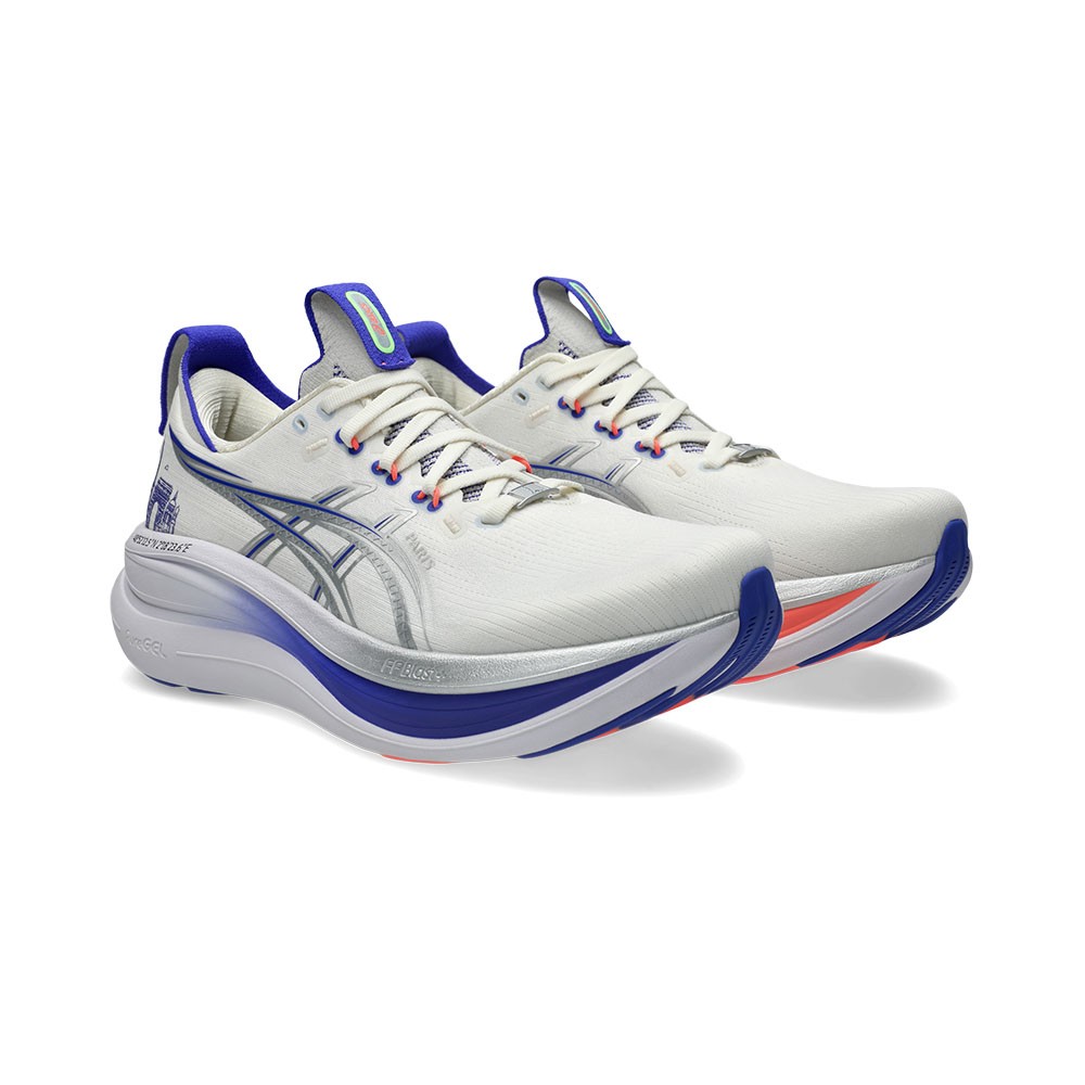 Le scarpe da running ASICS GEL-NIMBUS 28 offrono un’ammortizzazione morbida e leggera, ideale per lunghe distanze, con comfort superiore e materiali riciclati.