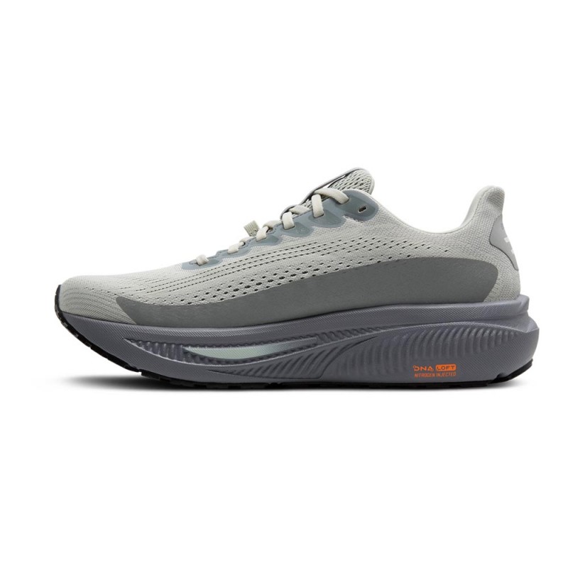 L'ammortizzazione DNA LOFT v3 è stata potenziata su tallone e avampiede, regalando una sensazione di sofficità e protezione a ogni impatto. La tomaia in mesh, realizzata al 59% con materiali riciclati, assicura traspirabilità e una calzata sicura e confortevole.