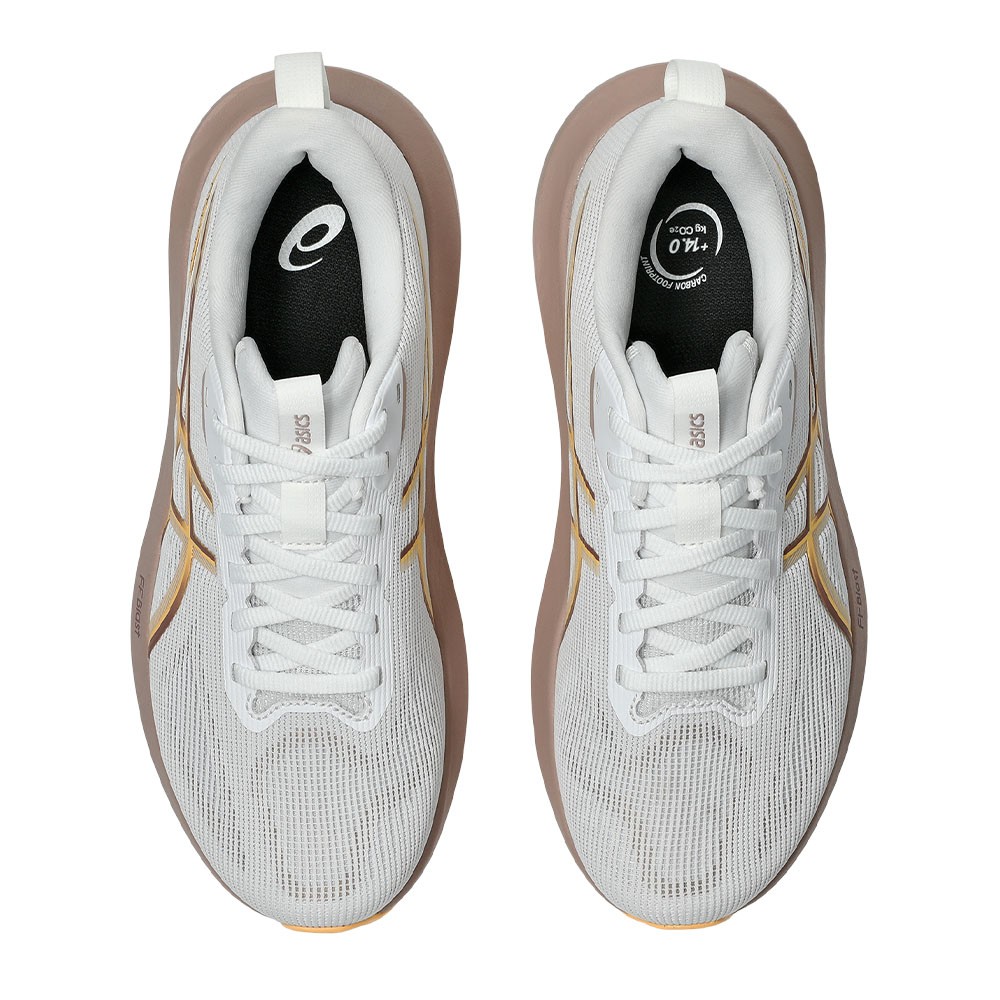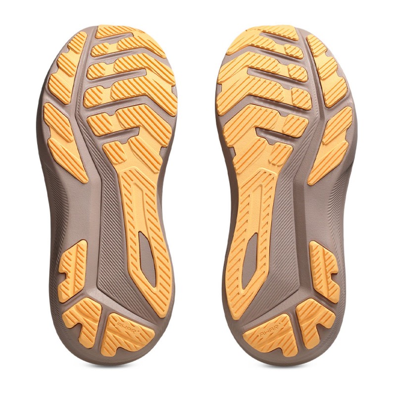 La tomaia in maglia rinforzata aggiunge traspirabilità e sostegno, mentre la piastra interna con effetto trampolino favorisce una spinta energica mantenendo stabilità. La suola AHARPLUS e AHAR LOW HARDNESS aumenta la resistenza all’usura.