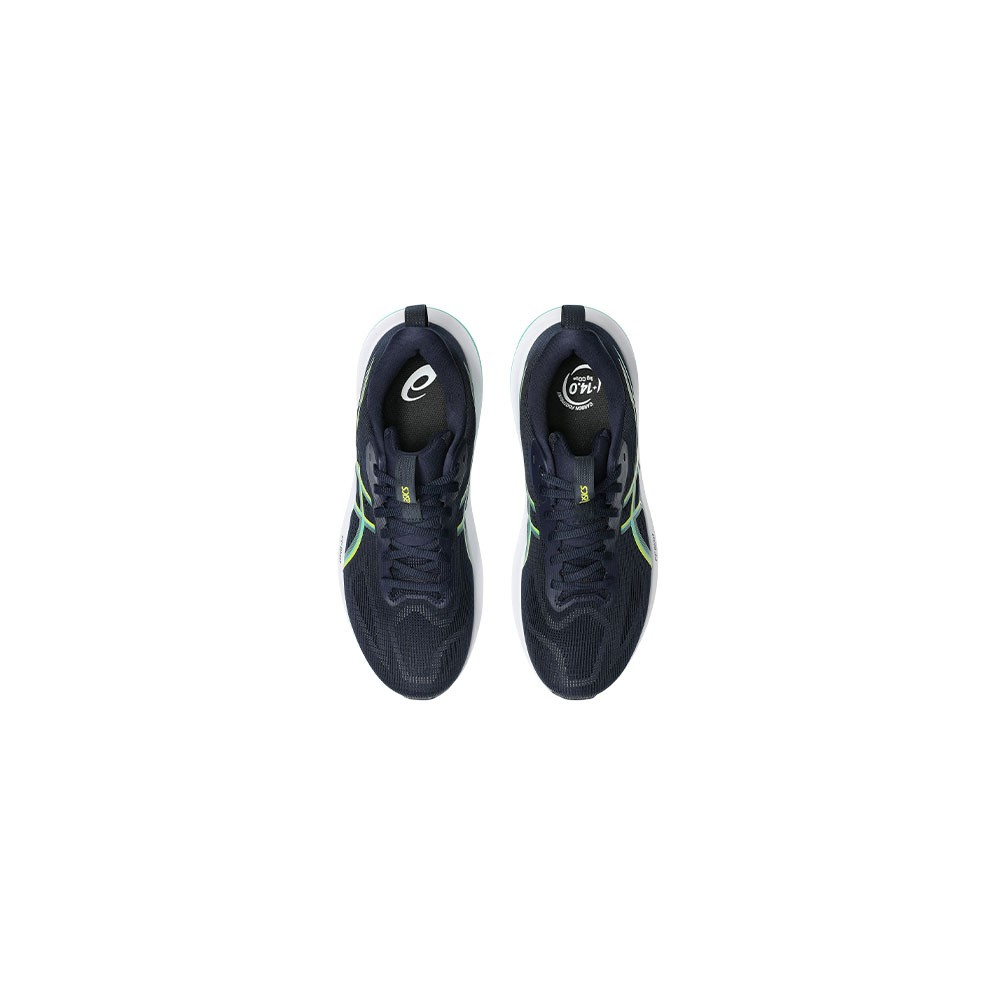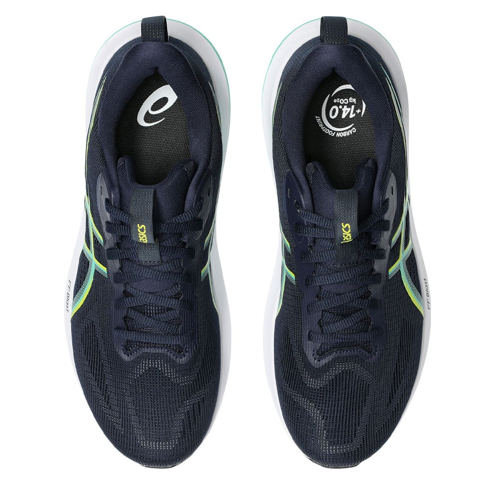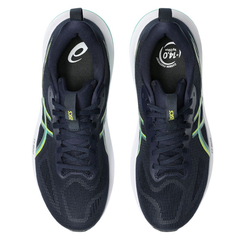 La tomaia rinforzata in mesh aumenta traspirabilità e comfort, ed è realizzata con almeno il 61% di materiali riciclati. Anche soletta, punta, occhielli, linguetta e fodera del colletto utilizzano materiali riciclati, a conferma dell’attenzione di ASICS per una produzione più responsabile.