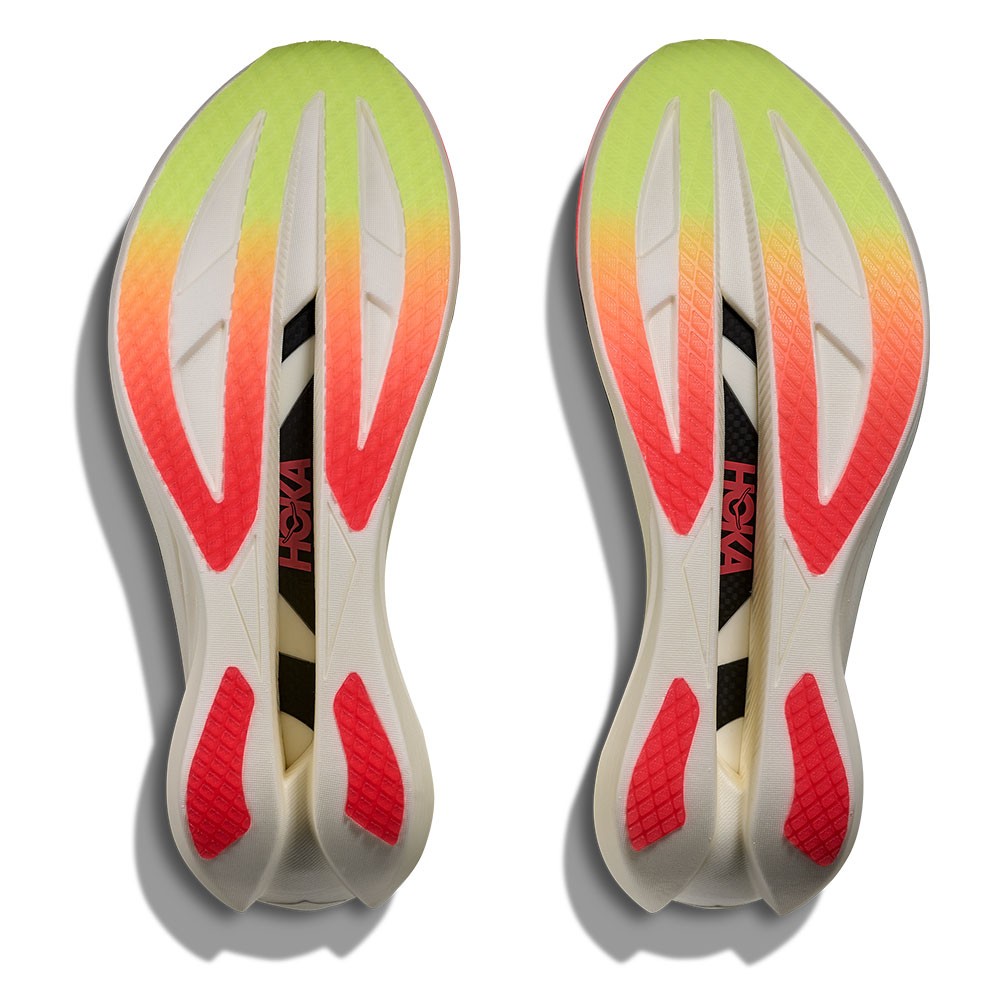 La tomaia tecnica a garza è più leggera e traspirante, con allacciatura asimmetrica che riduce la pressione sul collo del piede. Il risultato è una scarpa HOKA pensata per chi punta alla massima performance in gara.