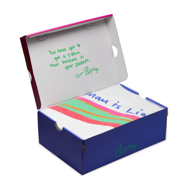 La tomaia in mesh tecnico assicura leggerezza, traspirabilità e una calzata stabile, mentre la suola con gomma ridotta minimizza il peso senza compromettere l’aderenza. Il design “Eliud Kipchoge” riprende i colori scelti dalla sua famiglia e il logo multistile Swoosh, simbolo dell’unione e della determinazione del team.