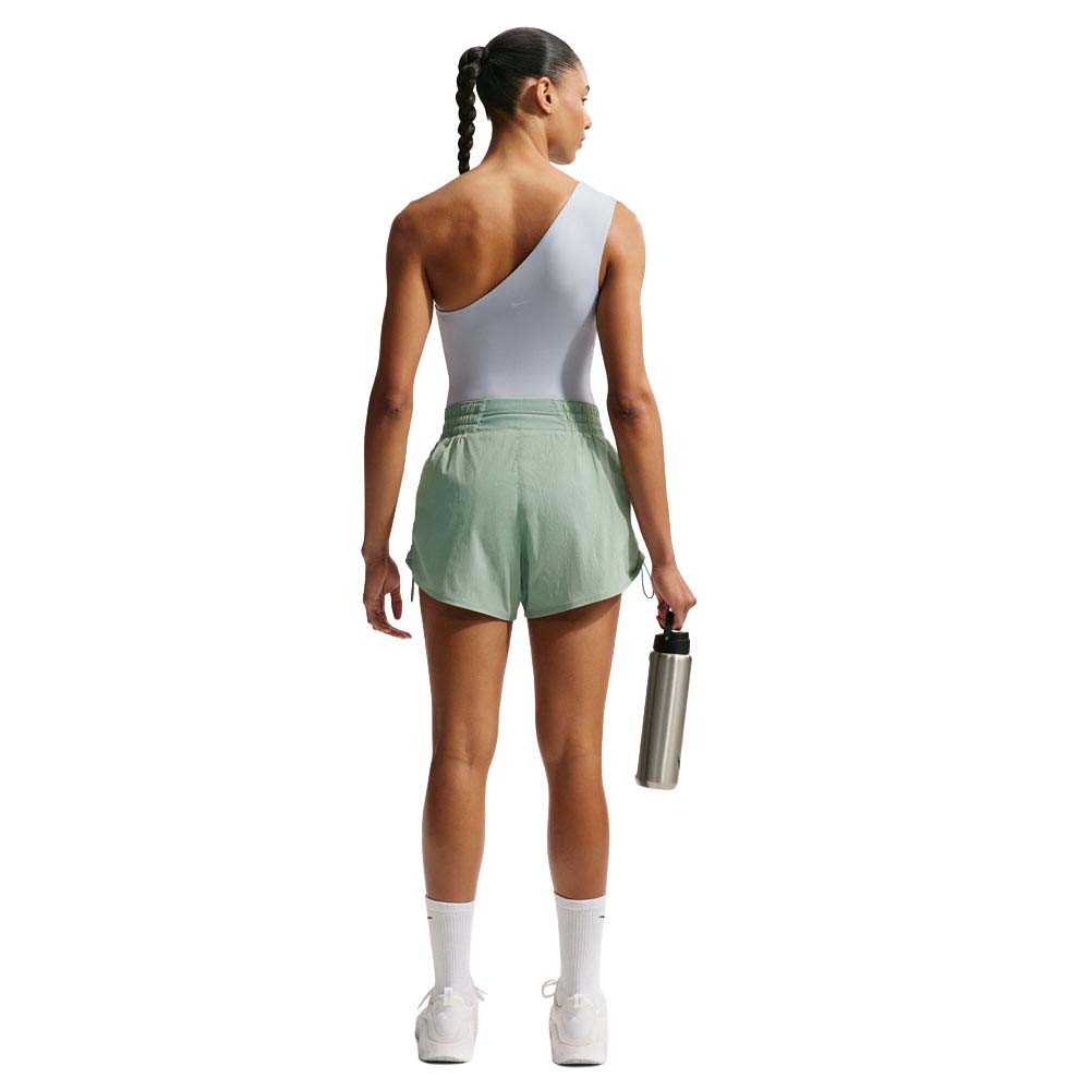 Nike One Shorts Sportivi Verde donna vita alta Dri-FIT 5 pollici in nylon con tasca mesh in vita bungee laterali e slip interno