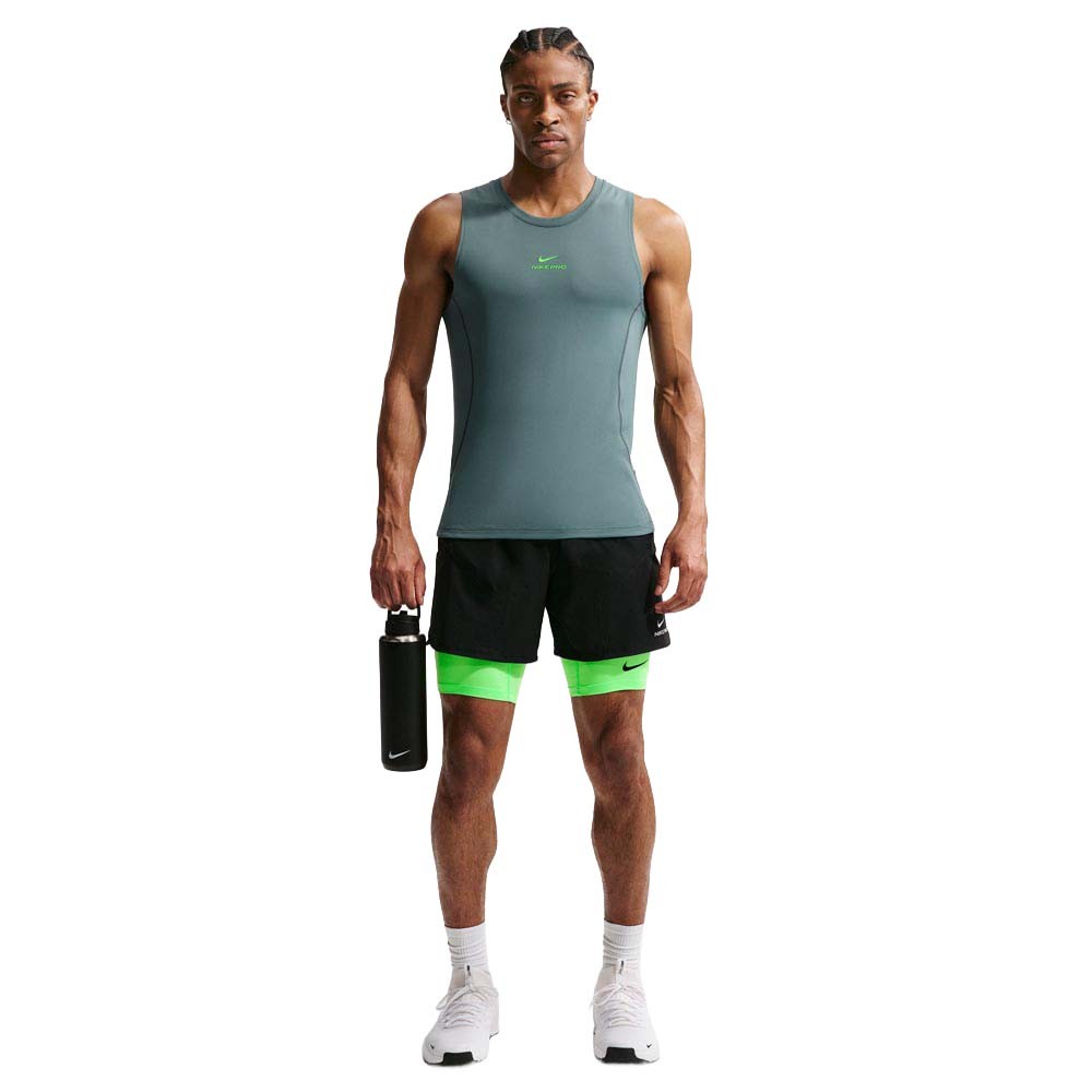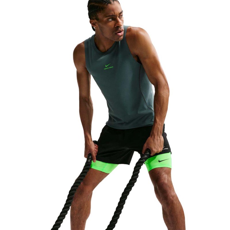 Nike Pro Shorts Sportivi Verde uomo Dri-FIT lunghi 23cm con tessuto elasticizzato fascia morbida in vita e tasca laterale