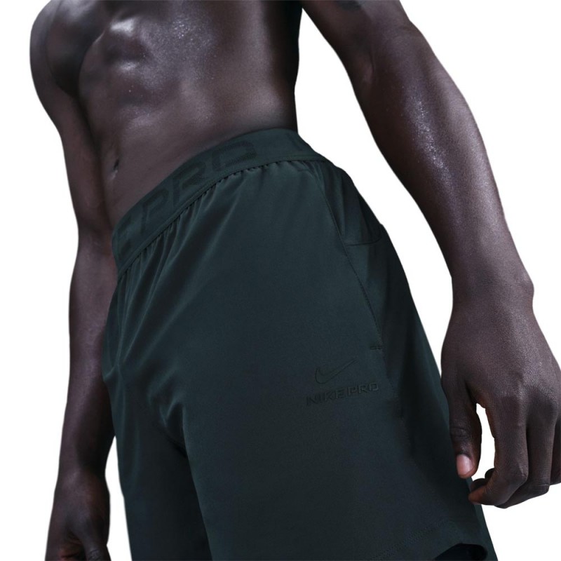 Shorts Nike Pro Training uomo verde. Tecnologia Dri-FIT per comfort e freschezza durante l'allenamento. Tasche zip e vita elasticizzata.
