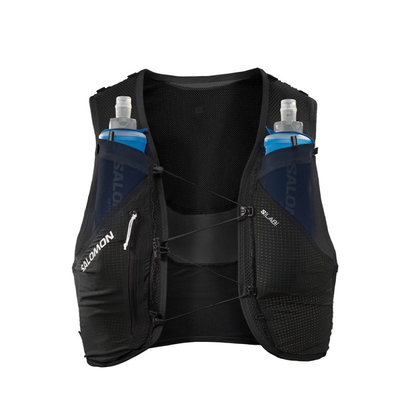 L’accesso rapido ai liquidi è garantito da due tasche frontali con flask morbidi da 250 ml inclusi e da una tasca posteriore ibrida che può contenere un flask da 500 ml o una giacca. Il sistema Quick link consente di regolare il gilet anche in movimento, rendendo l’idratazione sempre accessibile.